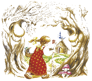 Одна девочка ушла из дома в лес. В лесу она заблудилась и стала искать дорогу домой, да не нашла, а пришла в лесу к домику.