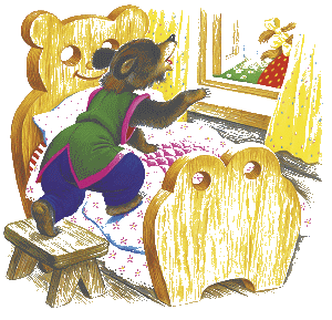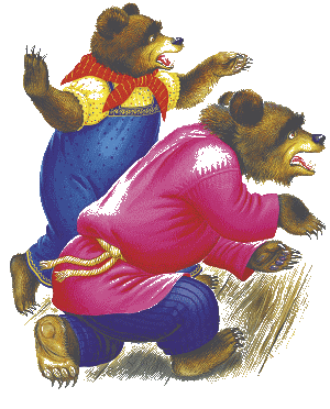 Девочка открыла глаза, увидела медведей и бросилась к окну. Оно было открыто, она выскочила в окно и убежала. И медведи не догнали её.
