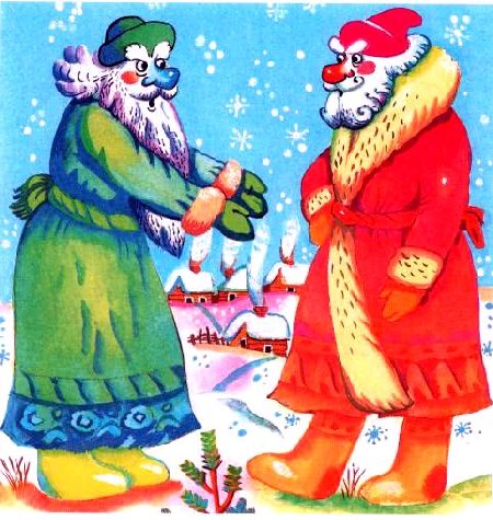 Гуляли по чистому полю два Мороза, два родных брата, с ноги на ногу поскакивали, рукой об руку поколачивали.