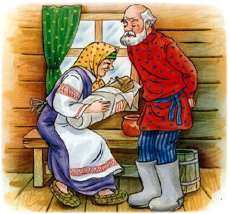 Старик вышел, увидел Терёшечку, привел к старухе — пошло обниманье!