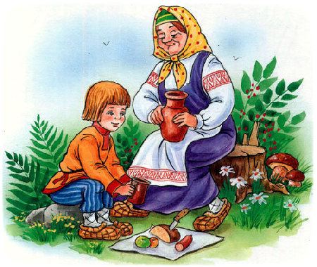 Челнок и поплыл далеко-далеко. Терёшечка стал рыбку ловить, а мать ему молочко и творожок стала носить. Придёт на берег и зовёт: