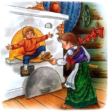 Вот Алёнка истопила печь жарко-жарко и говорит Терёшечке: