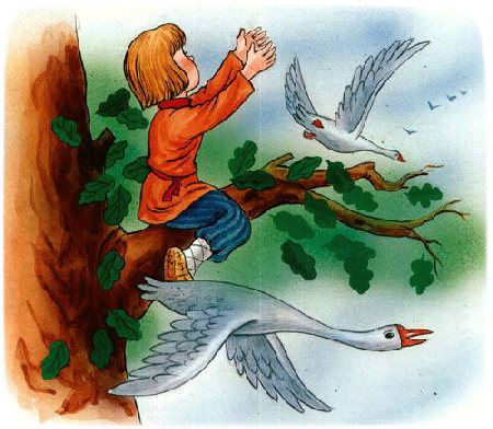 Что тут делать? Терёшечка видит: летят гуси–лебеди.