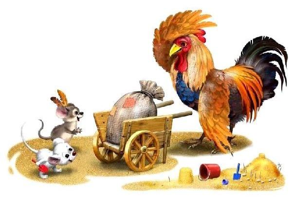 Мышата только и знали, что пели да плясали, крутились да вертелись. А петушок чуть свет поднимался, сперва всех песней будил, а потом принимался за работу.