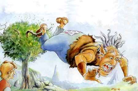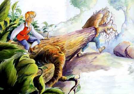 — Но уж если ты такой силач, помоги мне поднять это дерево, — сказал великан, показав на огромный дуб.