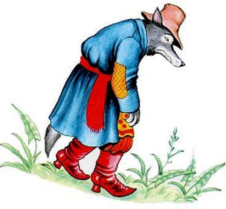 Глядит, а в гости к ней голодный Волк тащится.