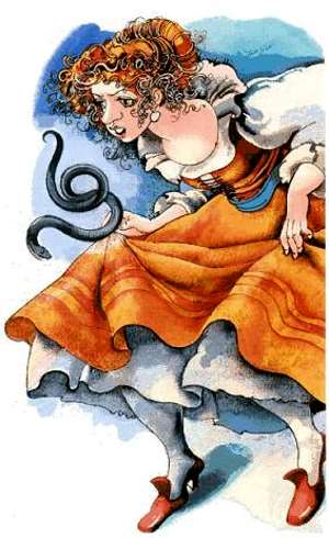 — А вот так, матушка! — буркнула в ответ дочка, и в то же мгновение две гадюки и две жабы плюхнулись на порог.
