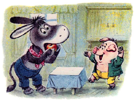 Пришёл как-то к ослику поросёнок Кнопка и сказал: