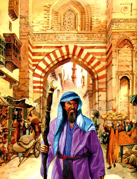В это время Аладдин как раз возвращался с охоты. Слуги султана вышли на улицу, чтобы его разыскать, и, увидев его, побежали к нему навстречу.