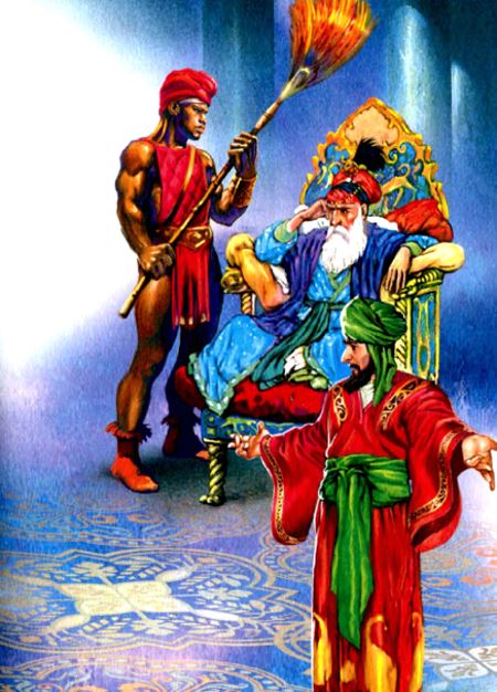 — Да разве ты ничего не знаешь? — закричал султан. — Ну так выгляни в окно. Что ты видишь? Где дворец? Ты — мой визирь и отвечаешь за все, что делается в городе, а у тебя под носом пропадают дворцы, и ты ничего не знаешь об этом. Где моя дочь, плод моего сердца? Говори!