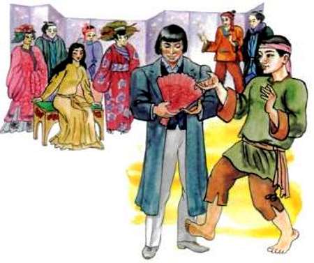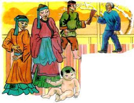 Молодой крестьянин посмотрел на волшебный веер и подумал: «В нашей деревне почти в каждом доме живут немощные старики. Пусть же этот веер принесёт им счастье».