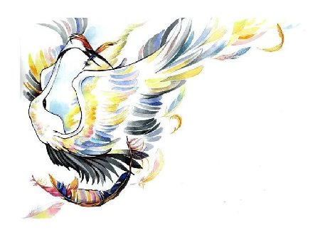 Широко раскрыла она свои крылья, выщипывает у себя клювом самый нежный мягкий пух и ткёт из него красивую ткань: кирикара тон-тон-тон, кирикара тон-тон-тон.