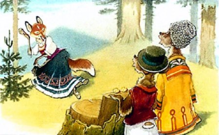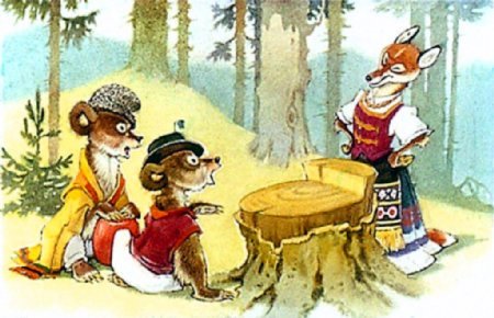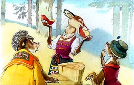 Спорили они, рычали, и вдруг подошла к ним лиса.
