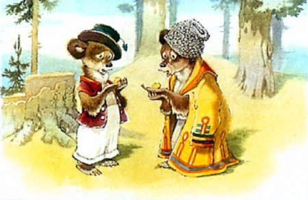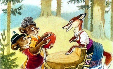 — Ну что ж, — сказала лиса, — хоть и помалу, да зато поровну! Приятного вам аппетита, медвежата! — И, помахав хвостом, она убежала.