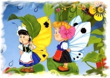 — Так и быть, белую бабочку от дождя спрячу, она на меня похожа, а красная и жёлтая пусть себе другое место ищут.