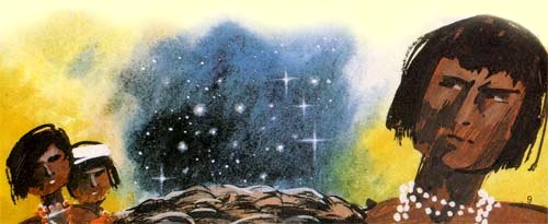 Прослышал Уаньям, что ночью завладели ядовитая змея сурукуку и все её родичи: змея жарарака, паук, скорпион, стоножка, — и сказал людям своего племени: