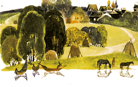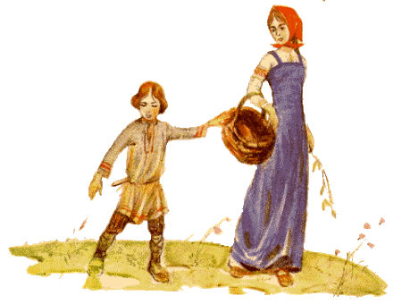 Пошла Алёнушка на работу и братца с собой взяла. Идут они по дальнему пути, по широкому полю, и захотелось Иванушке пить: