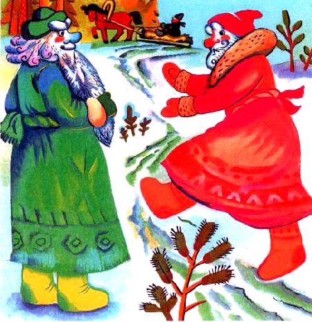 — Эх, — говорит, — братец Мороз — Синий нос, молод ты и прост. Я его так уважил, что он час будет греться — не отогреется.