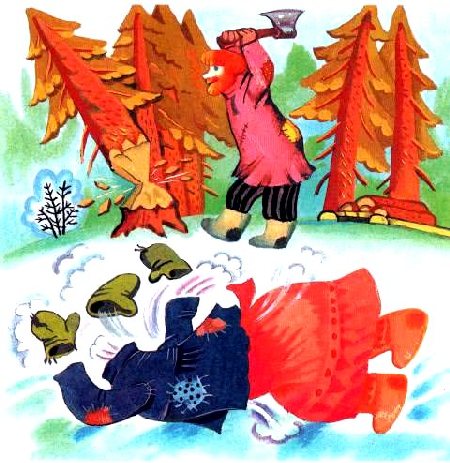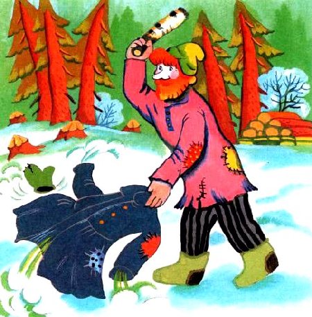 — Эх, братец Мороз — Багровый нос! Плохую ты со мной шутку сшутил, что вовремя не образумил. Думал — заморожу мужика, а вышло — он же отломал мне бока.