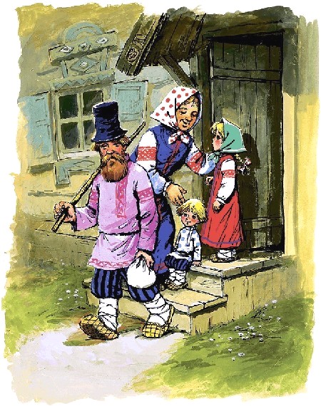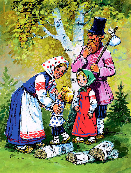 Жили мужик да баба. У них была дочка да сынок маленький.
