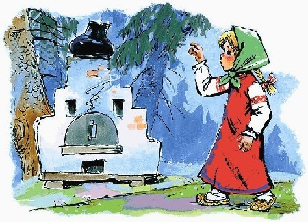 Бросилась девочка догонять их. Бежала, бежала, увидела — стоит печь.
