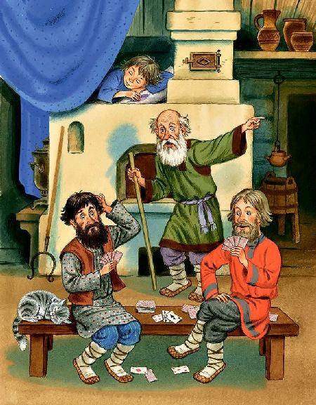 Было у старика трое сыновей: двое умных, а третий — Иванушка–дурачок; день и ночь дурачок на печи валяется.