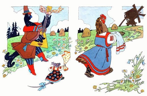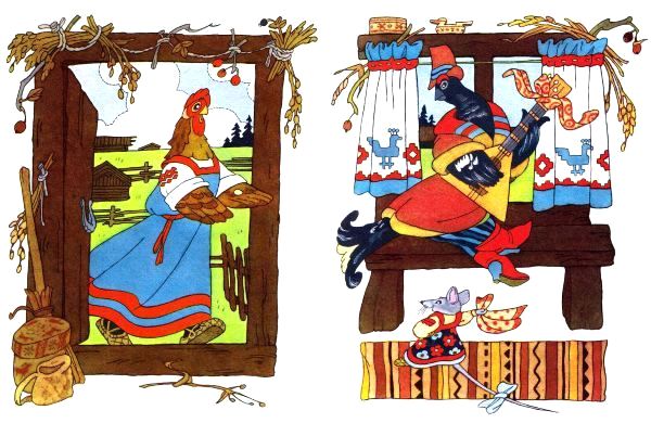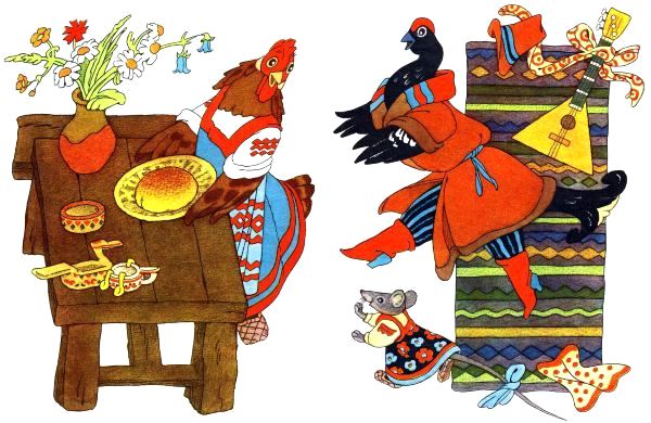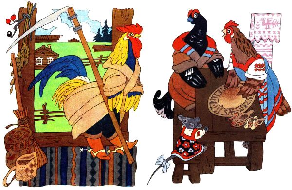 — А кто мышку с тетеревом за стол пригласил? — спросил петушок и посмотрел на мышку и тетерева.