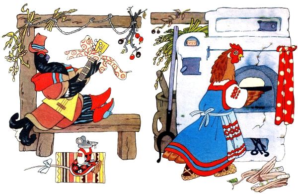 — О, какой хлеб румяный да пышный! — сказал петушок. — Кто его испёк?