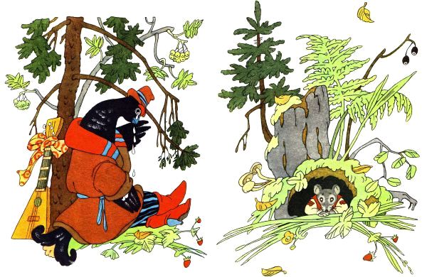 Стыдно им стало. Убежала мышка в свою норку, а тетерев в лес улетел.