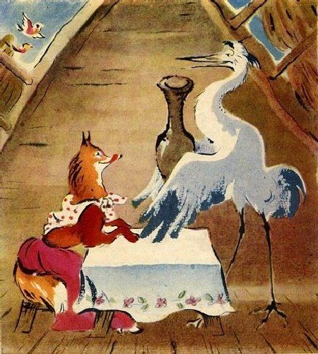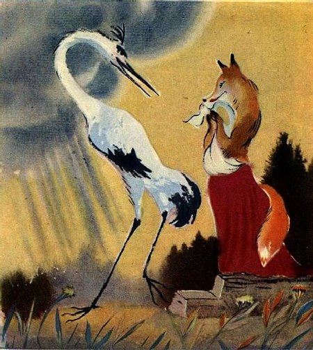 Вот вздумала лиса угостить журавля, пошла звать его к себе в гости: