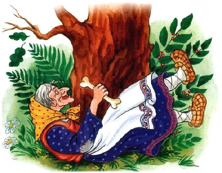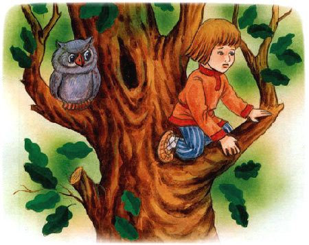 Ведьма глянула и увидела его на высоком дубу. Кинулась грызть дуб. Грызла, грызла — два передних зуба выломала, побежала в кузницу: