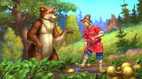 — Не ломай меня, медведюшка, лучше давай вместе репу сеять. Я себе возьму хоть корешки, а тебе отдам вершки.