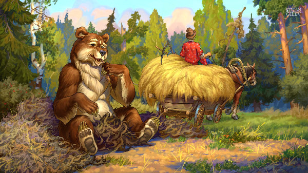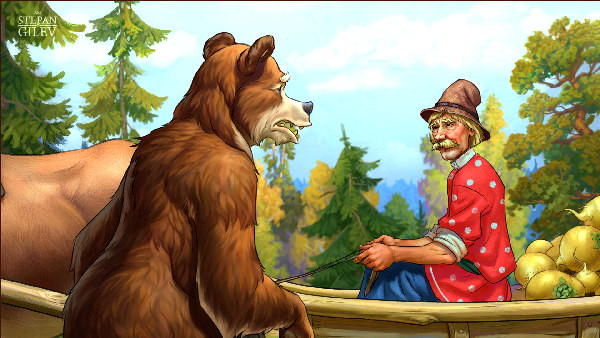 Отдал мужик медведю всю ботву, а репу наклал на воз и повёз в город продавать.