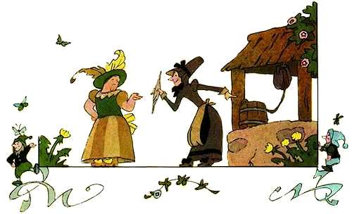 Рассказала им девушка обо всем, что с нею случилось, и захотелось мачехе, чтобы ее дочка тоже стала богатой, чтобы она тоже много золота в дом принесла.