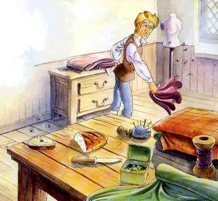 Портняжка вынул из кармана кусок сыра и сжал его так, что из сыра потекла сыворотка.