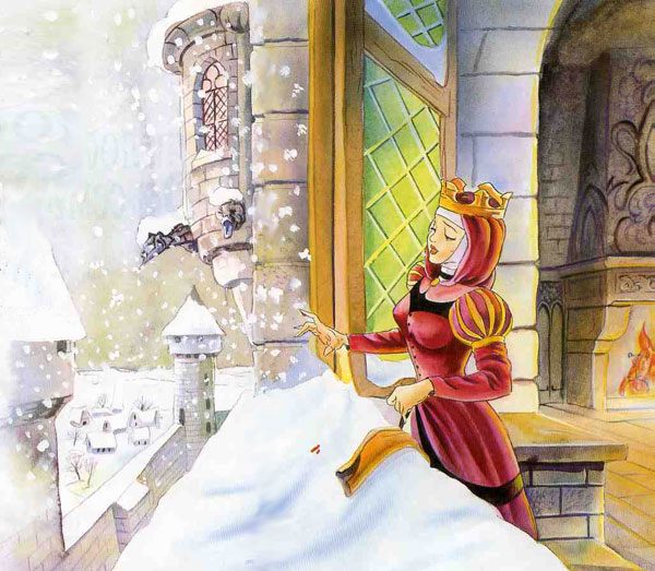И вскоре она родила девочку: белокожую, с алыми, как кровь, губками и волосами чёрными, как смоль.
