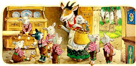 Жила-была старая коза. Было у ней семеро козлят, и она их так любила, как может любить своих детей только мать. Раз собралась она идти в лес, корму принести; вот созвала она всех своих семерых деток и говорит: