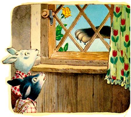 Положил волк свою лапу на окошко, увидели они, что она белая, и подумали, что он правду говорит, — и отворили ему дверь. А тот, кто вошел, был волк.