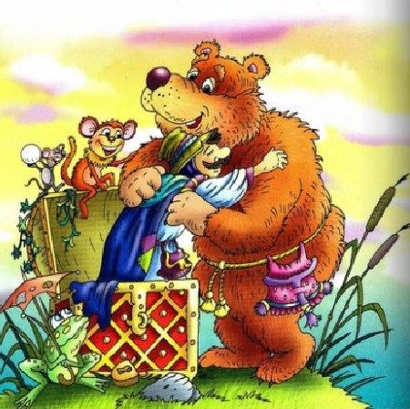 Пошёл человек дальше. Приходит он в другую деревню, видит — у ребят обезьяна; заставляют они её плясать и кувыркаться, потешаются над ней, не дают ей покоя. Дал человек ребятам денег, чтоб отпустили они обезьяну. Потом пришёл он в третью деревню, а там у ребят был на цепи медведь; приходилось ему становиться на задние лапки и плясать, а когда он ворчал, это их забавляло. И он выкупил медведя; обрадовался медведь, что можно стать теперь опять на свои четыре лапы, и затопал он прямо в лес.