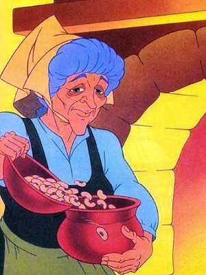 Когда сыпала она бобы в горшок, один боб взял да и упал на пол.