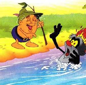 А боб осторожней был — он на берегу остался. Остался на берегу и давай смеяться над угольком и соломинкой.