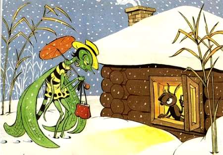 5. И.А.Крылов относил эту басню к числу своих «переводов и подражаний». Произведение представляет собой переработку басни Лафонтена «Кузнечик и муравей» («La cigale et la fourmi», 1668 г.), которая в свою очередь восходит к одноимённой басне греческого баснописца Эзопа.
