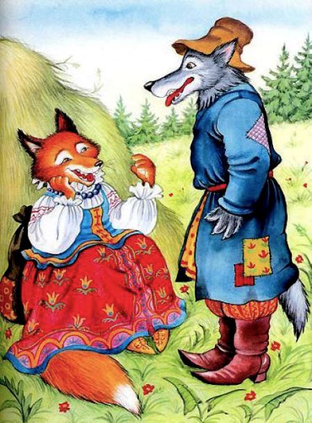 В основе басни — мотивы русских народных сказок о волке и лисе.