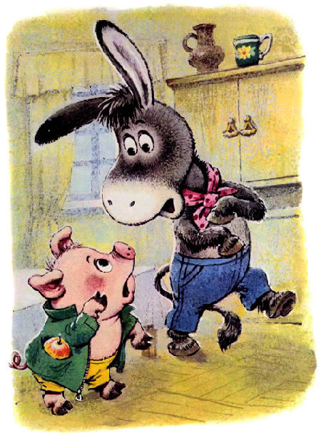 Пришёл как-то к ослику поросёнок Кнопка и сказал: