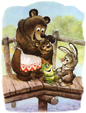 — Теперь вы стали знаменитыми на весь наш лес… Когда кто-нибудь пройдёт по этому мостику, то обязательно скажет спасибо Зайчонку и Медвежонку, которые его починили…
