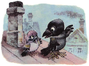 — Что ж, зато теперь будешь знать, — сказала Галка, взмахнула крыльями — и улетела. Она, конечно, пошутила, а Сойка ей поверила.