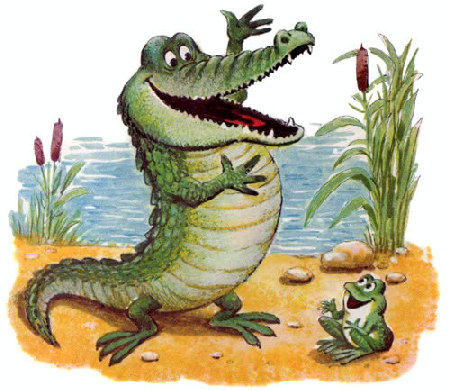 — А потому знаменитый, что съел на завтрак глупого лягушонка, который сам ко мне пришёл! — сказал крокодил и щелкнул пастью.
