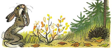 Заяц подскочил к Ежу:
