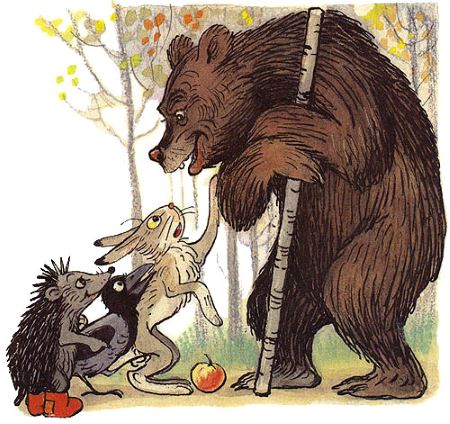 — Вот что, — рассудил Медведь, — все вы правы, и потому каждый из вас должен яблоко получить…