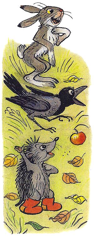 — Но тут только одно яблоко! — сказали Ёж, Заяц и Ворона.